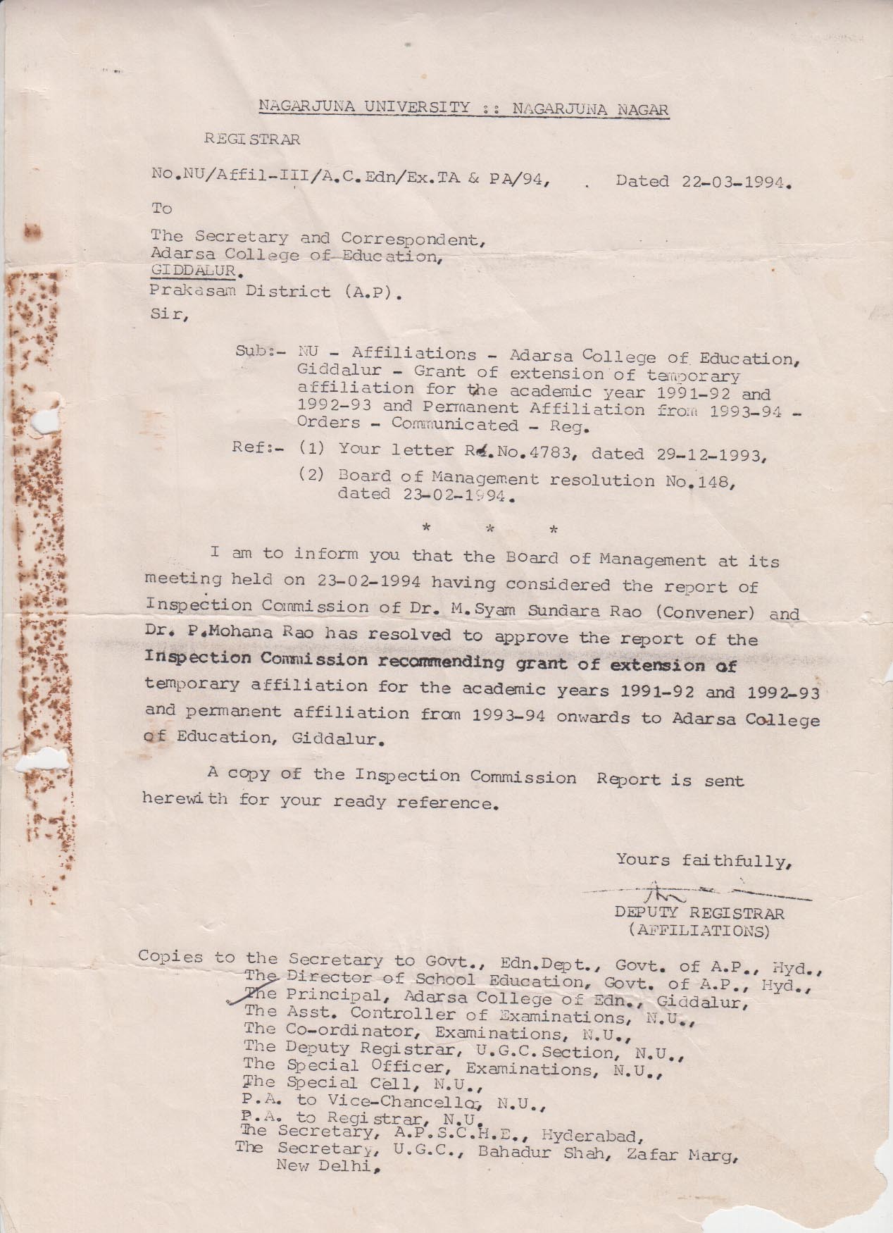 Click Here for B.ED PERMANENT AFFILIATION